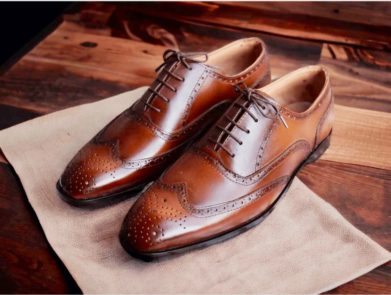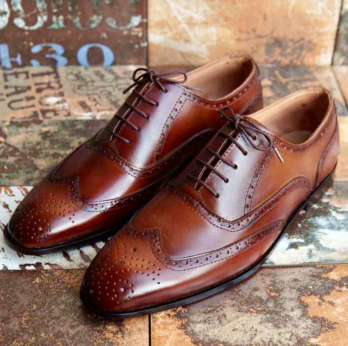 The Windsor Sovereign is crafted from hand-burnished chestnut leather, deepened with a rich patina that speaks of tradition and permanence. Its classic Oxford silhouette is elevated by precise brogue perforations and a sculpted wingtip design — details long associated with gentlemen of distinction.